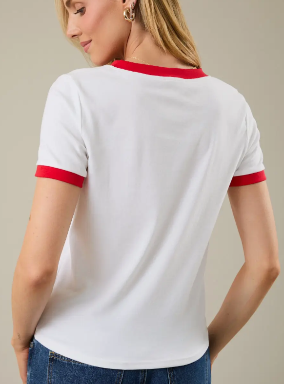 🐟 Classic red ringer neckline & sleeve trim